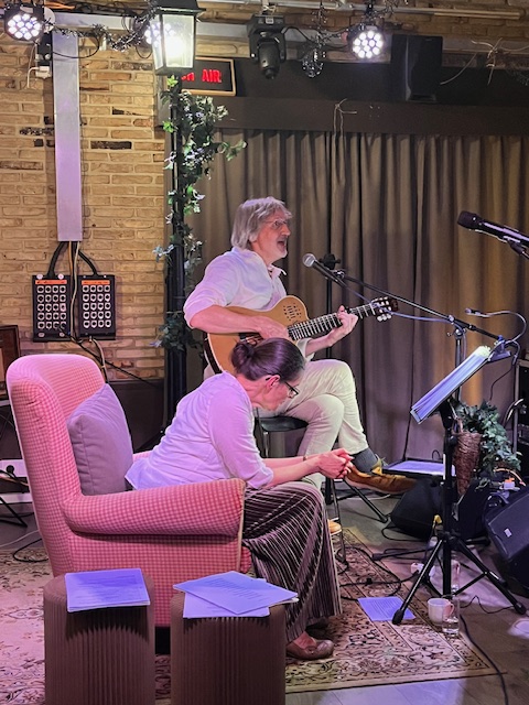 De samenwerking tussen Lieven en Wivine was zichtbaar hecht. Hun respectieve bijdragen aan de voorstelling vulden elkaar naadloos aan, waarbij de muziek en de poëzie elkaar wederzijds versterkten. Deze synergie kwam bijzonder tot uiting in een gezamenlijke uitvoering van een lied, waarin Wivine’s poëtische tekst door Lieven op muziek was gezet.
